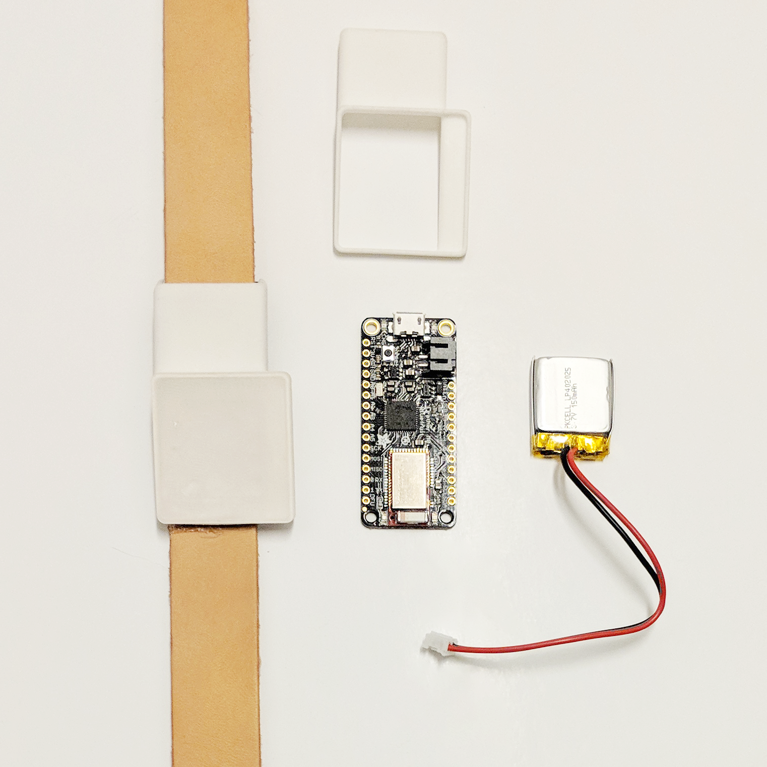 3D printed plastic prototype parts, logic board and battery